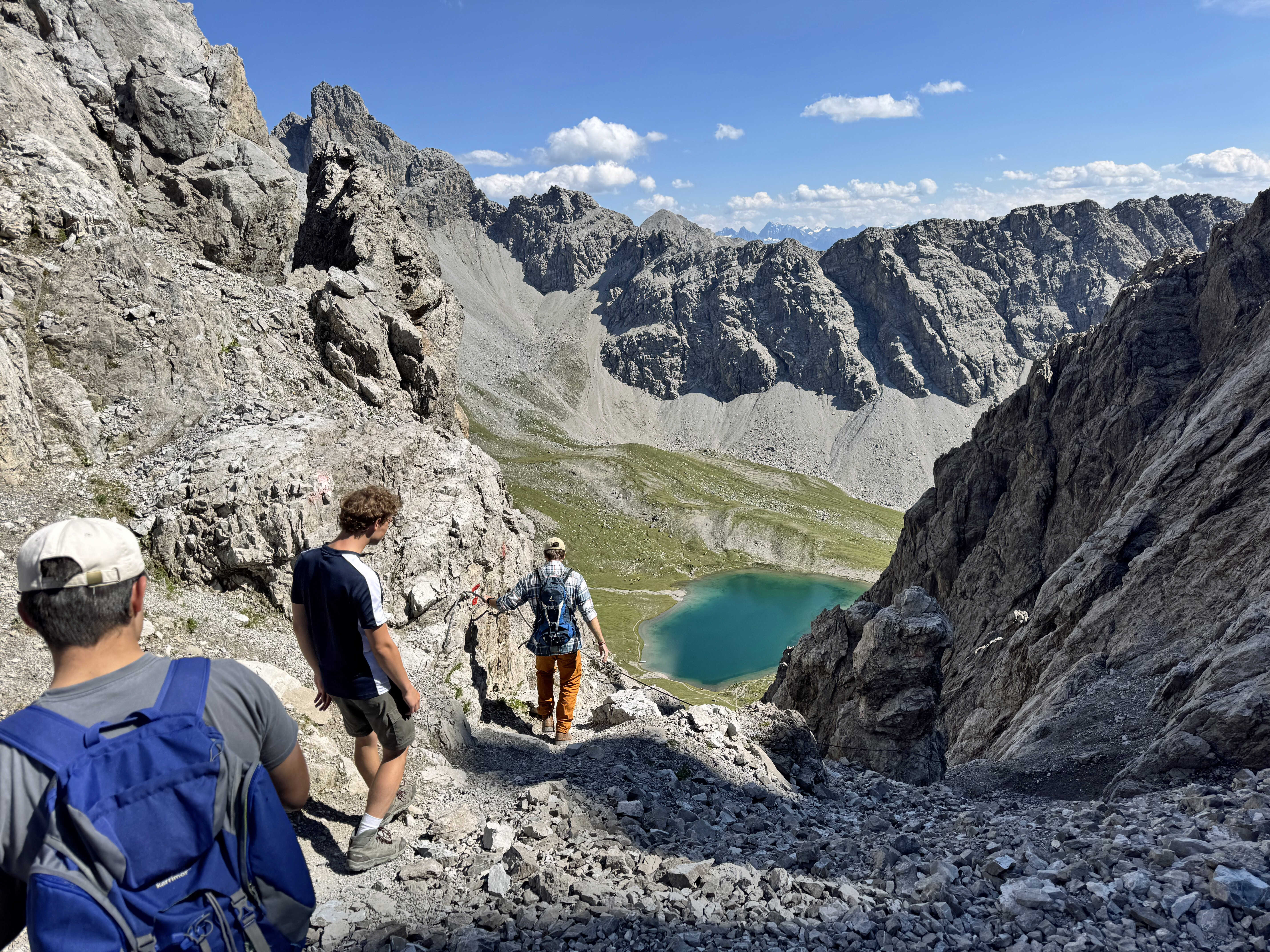 Nächster Halt: Landeck. Hier verbrachten wir den Tag mit Zeltaufbau und Vorbereitungen für die bevorstehende Wanderung. Früh morgens brachen wir auf. Unser Ziel: der Gipfel. Naja, zumindest mal die Steinseehütte. Nach etlichen Höhenmetern oben angekommen genossen wir eine wohlverdiente Mahlzeit, bevor es am nächsten Tag wieder den Berg runter ging.